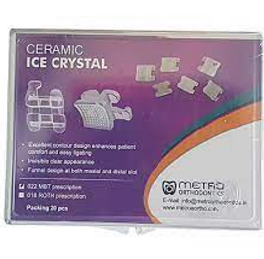 Metro Orthodontics Ice Crystal Series Pack of 20 Ceramic Conventional Brackets - 022 MBT