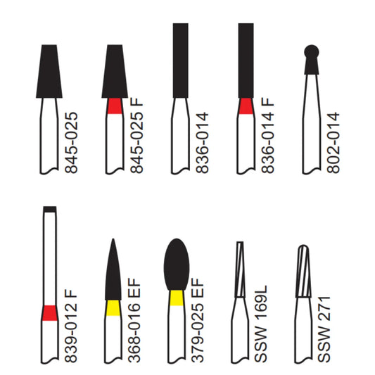Pivo Inlay - Onlay Preparation Airotor Diamond Burs Kit (Set Of 10)