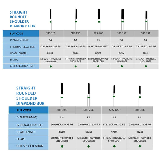 Frank Dental Cylinder Round Edge Diamond Burs SRS Series (Extra Fine)