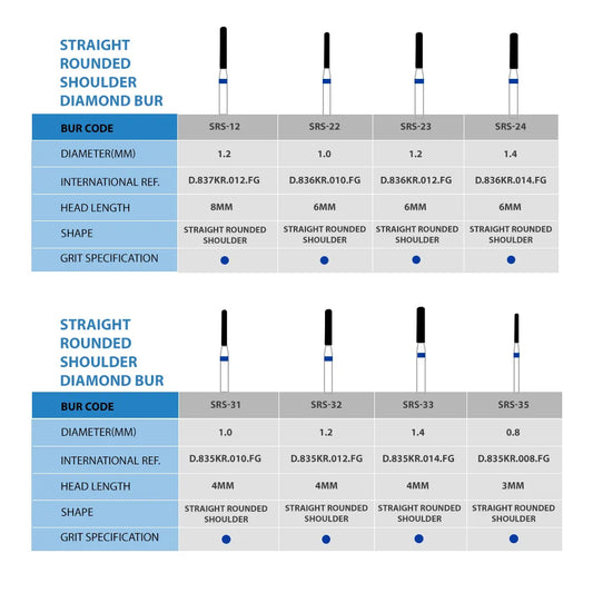 Frank Dental Cylinder Round Edge Diamond Burs SRS Series (Regular)
