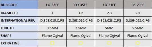 Frank Dental Flame Ogival FG Diamond Burs FO Series (Extra Fine)