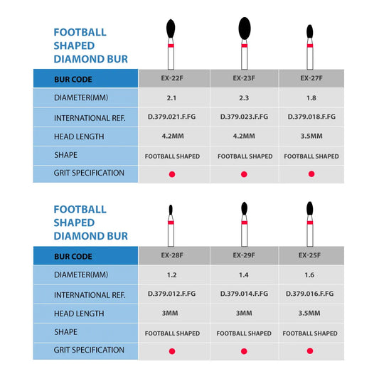 Frank Dental Football Shaped FG Diamond Burs EX -Series