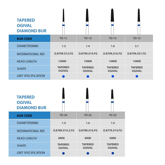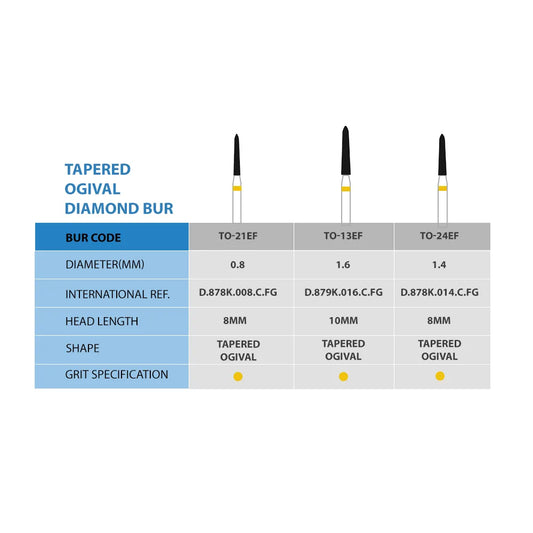 Frank Dental Tapered Ogival FG Diamond Burs TO- Series (Extra Fine)