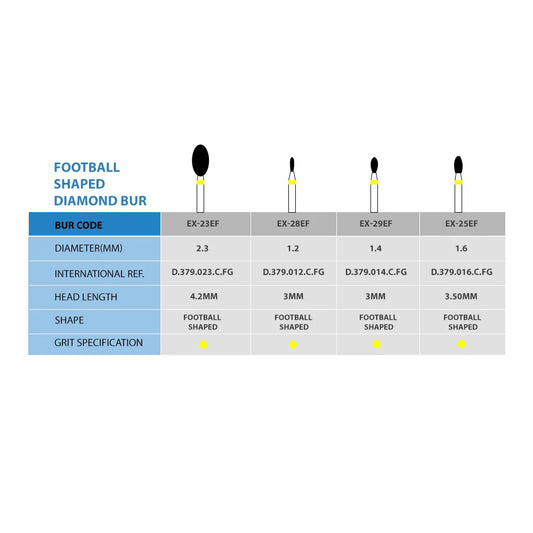 Frank Dental Football Shaped FG Diamond Burs EX -Series