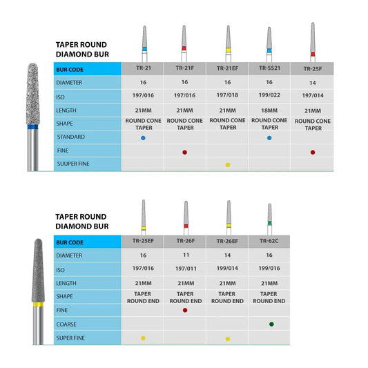 Pivo Taper Round End CA Diamond Burs - TR (Pack Of 5)