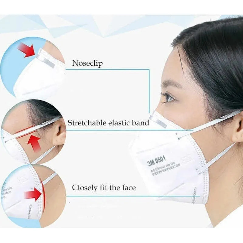 3M 9501 Anti Virus Face Mask is a dust mask composed of three layers of filters. The outermost layer filters out the largest dust particles, the innermost layer preserves the respirator’s shape and the middle layer is composed of electrostatic filter media. It has the ability of this respirator mask to filter above 90% of 0.3-micron particulate dust. (Scientific research has proven that for all dust particles sizes, 0.3-micron dust are the most difficult to filter effectively). This 3m mask is used as a disposable face mask for respiratory protection against fine dust particles. It is a bestselling Safety mask in the 3m Safety products line. 3M 9501 mask has a cup shape design and comes with aluminum nose clip & neoprene elastic band for comfortable fitting on every face.