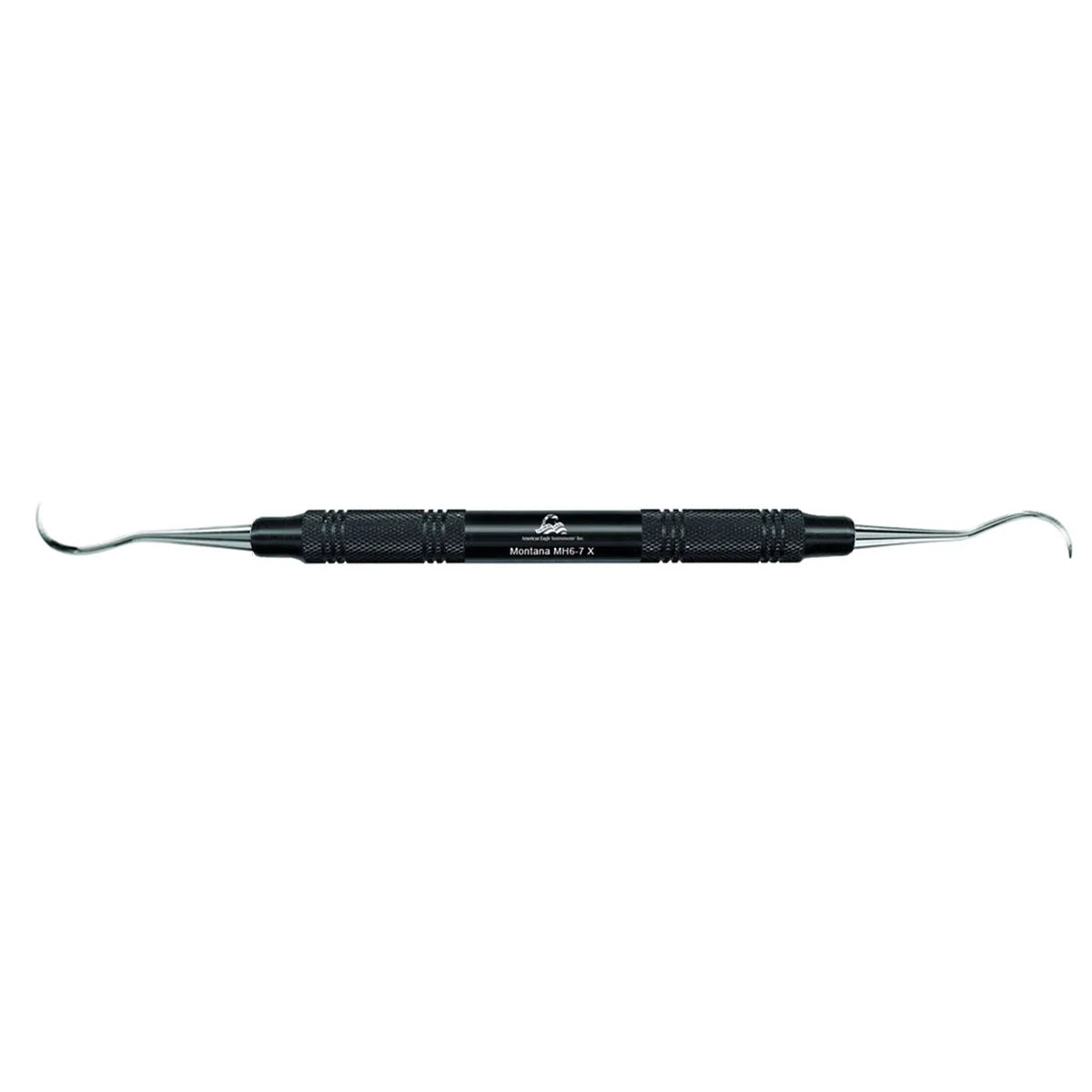 American Eagle Anterior Scaler H 6-7 Montana Black - MH6-7X, meticulously engineered to elevate anterior scaling procedures with unparalleled precision and comfort. Designed for targeted use in the Montana area of the mouth, its distinctive black resin handle, EagleLite® Black Resin (X) Montana, offers a secure and ergonomic grip, ensuring optimal control during delicate procedures. Crafted with a handle size of 3/8'' (9.5mm), this scaler strikes an exquisite balance between comfort and maneuverability, facilitating seamless movements for precise scaling. Constructed from premium materials, including the durable EagleLite® Black Resin, this instrument guarantees exceptional longevity, making it an enduring asset in dental practices.