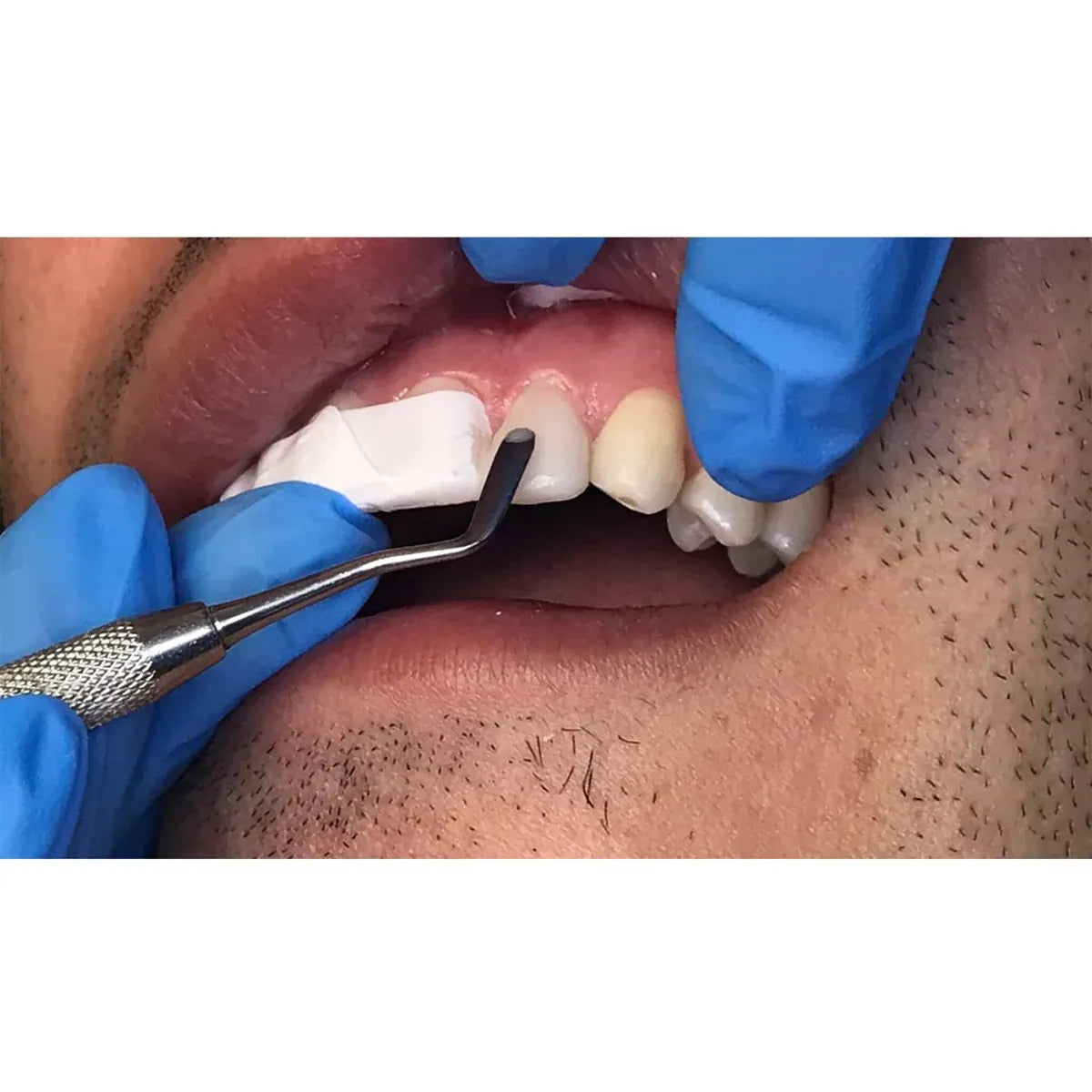 - Placement: With precise control, place the instrument on the targeted area of the tooth requiring restoration, ensuring proper alignment for accurate contouring and shaping.
