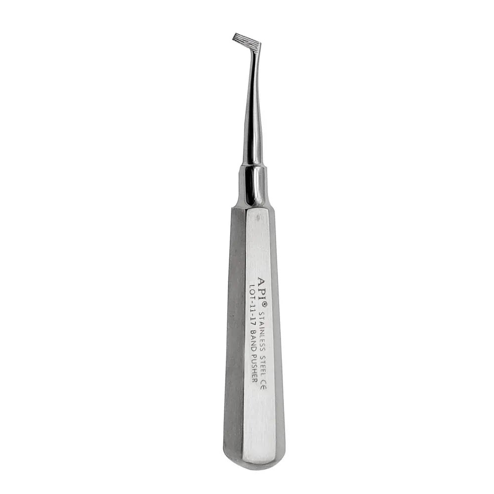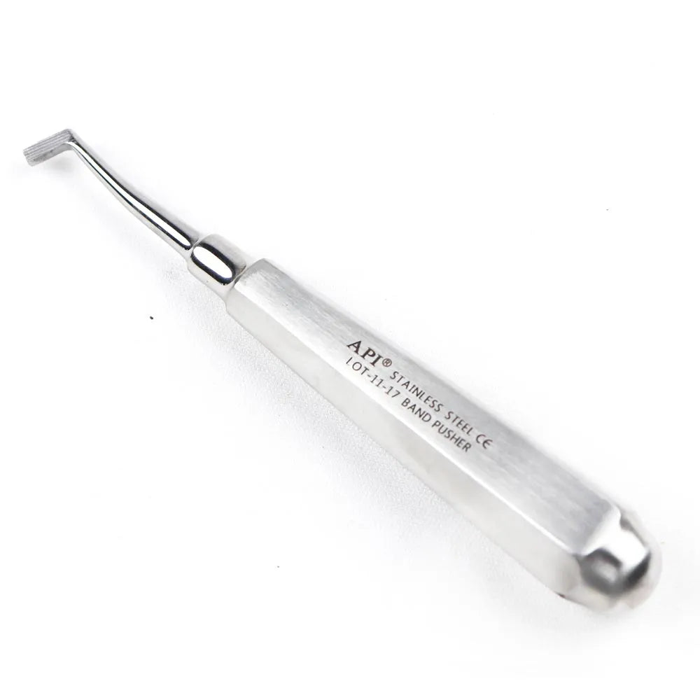 Api Band Pusher is an orthodontic instrument that is used to aid in the placement and seating of orthodontic bands.