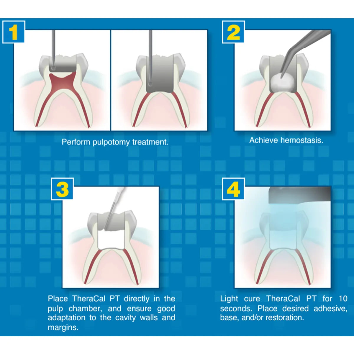 - Dual Cured: Confidently place TheraCal PT in one layer as it is a dual cured material.