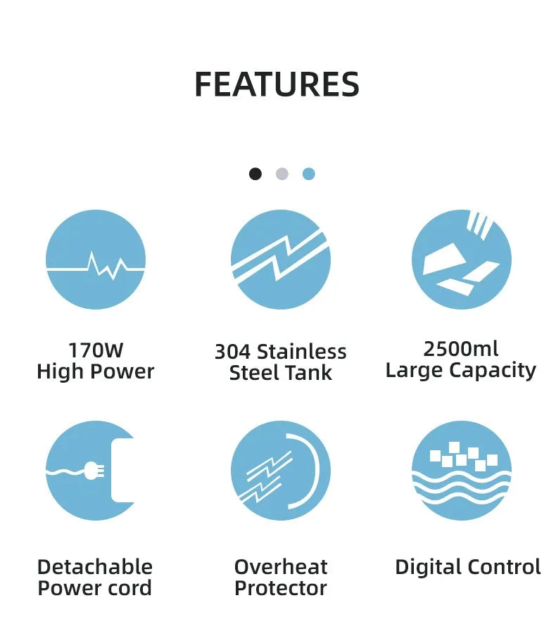 - LED Display : Digital Timer with 5 Cycles (180/280/380/480/90 seconds)