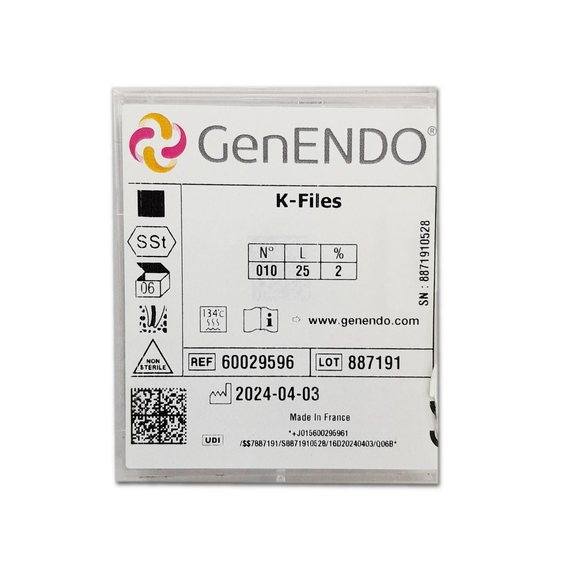 GEN ENDO K FILES K files are the universal standard for canal negotiation, shaping, and recapitulation of root canal systems. They are generally used with a quarter turn “watch-winding” motion and vertical pull