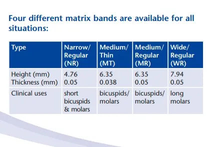 - All AutoMatrix system matrix sizes fit teeth of any circumference.