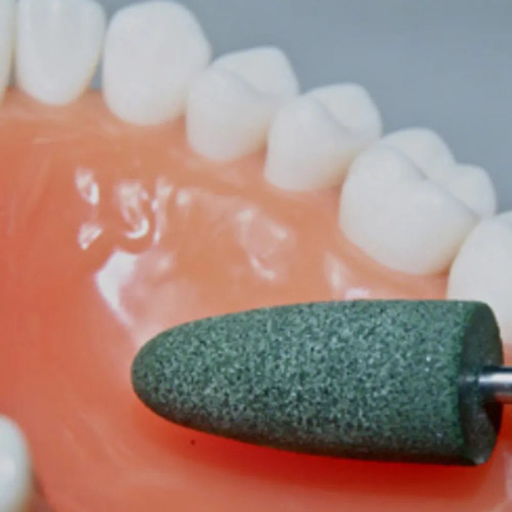 - Fine - Green - These burs are used for fine finishing & polishing of the surface of the prosthesis.