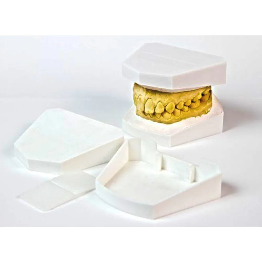 Made of impact-resistant plastic, with a hinge. Eliminates time-consuming plaster model preparation. Suitable for orthodontic base unit acc. to Hinz.