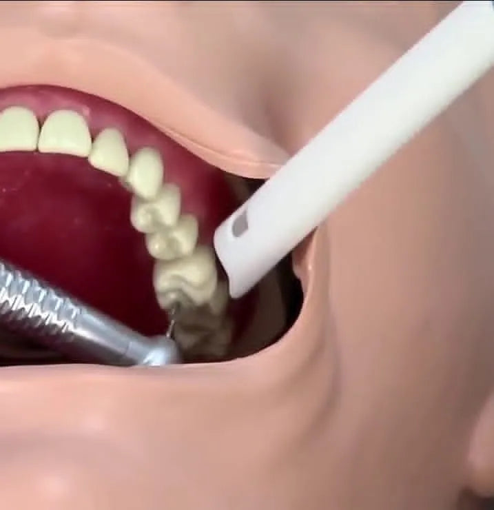 - Start the unit as when required to minimize splatter and aerosol spread .The tip can also be used for slight cheek and tongue retraction during the procedure