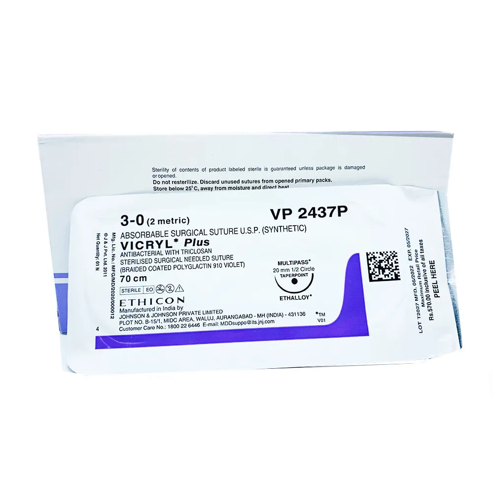 Ethicon Vicryl Plus # 3-0 Absorbable Violet Braided Suture (VP 2437P) (Pack Of 12)