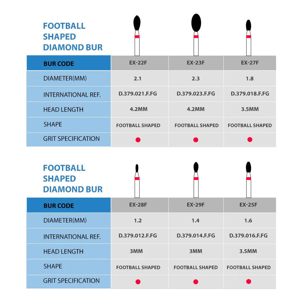 Frank Dental Football Shaped FG Diamond Burs EX -Series