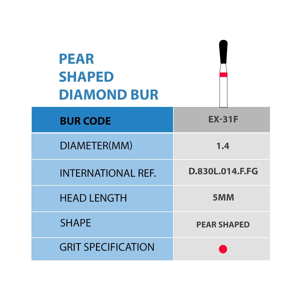 Frank Dental Pear Shaped FG Diamond Burs EX -Series (Long)