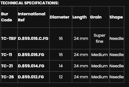Answer: The bur features a friction grip (FG) standard shank length, designed for compatibility with airotor handpieces.
