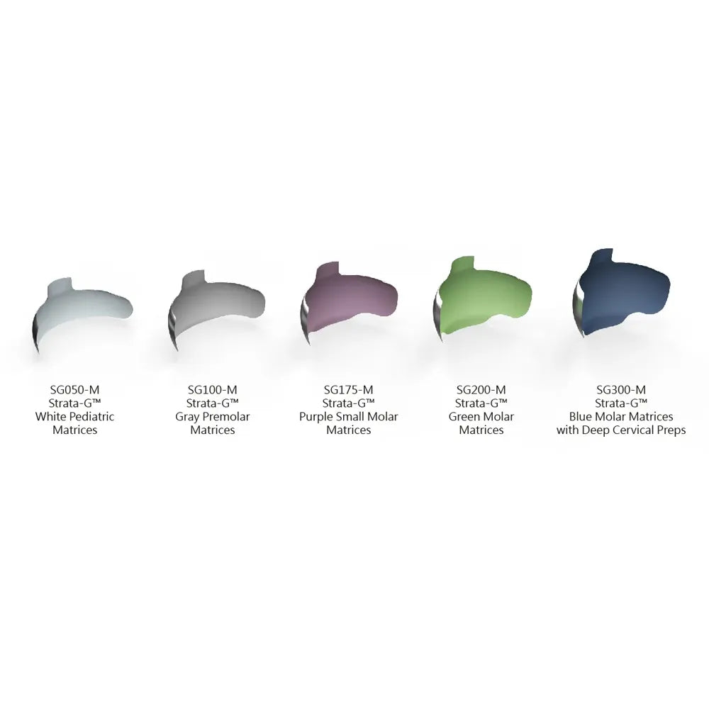 - User-Friendly: Non-stick and color-coded for easy identification and application, the Strata-G™ Sectional Matrix System simplifies the restorative process, enhancing efficiency and workflow in the dental practice.