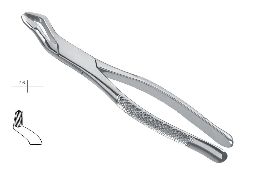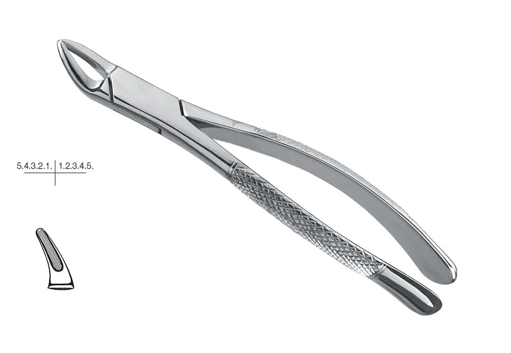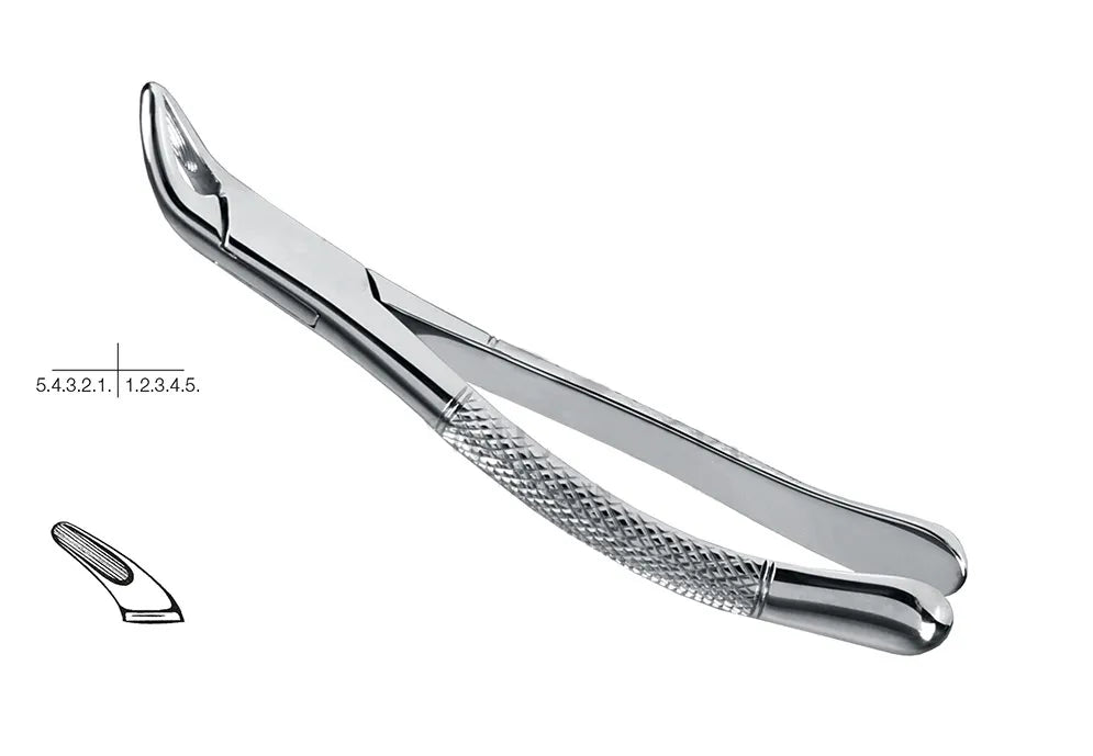 GDC American Extraction forceps are used along with elevators to extract teeth. Each extraction forceps is designed for a particular area of the mouth. The beaks are designed to fit around the cervical portion of the tooth. Pointed beaks are designed to grip the furcation area. Tooth Extracting forceps are used to extract teeth designed for use in specific areas of the mouth.