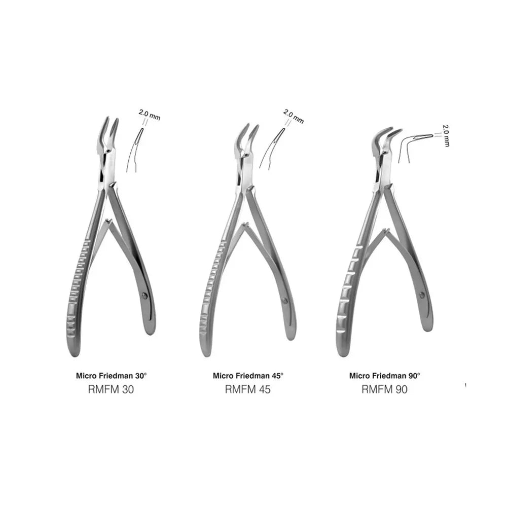 A bone rongeur is used after extraction and oral maxillofacial surgery to remove bony fragments or soft tissues. Rongeurs are surgical instruments used to trim, contour, and remove bone after teeth extractions. Rongeurs have a spring mechanism between the handles and a sharpened working end. A rongeur is a heavy-duty instrument with a sharp-edged scoop-shaped tip, used for gouging to the bone. It can be used to open a window in bone, in order to access underneath tissues.