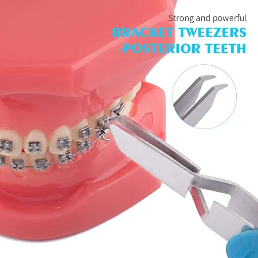 The bracket placing tweezers are made of high-quality steel and used to position the brackets on the tooth surface while bonding the braces. A bracket holder with a longer shank is helpful in aiming the right location of the bracket and its design helps to overview the adjacent brackets to visually determine the position of the bracket. The back end of the placer is another important part that saves your time and assures gentle and uniform pressure in the central part of the bracket to equally disperse the bonding agent the back end of this bracket placer is designed keeping in view this requirement.