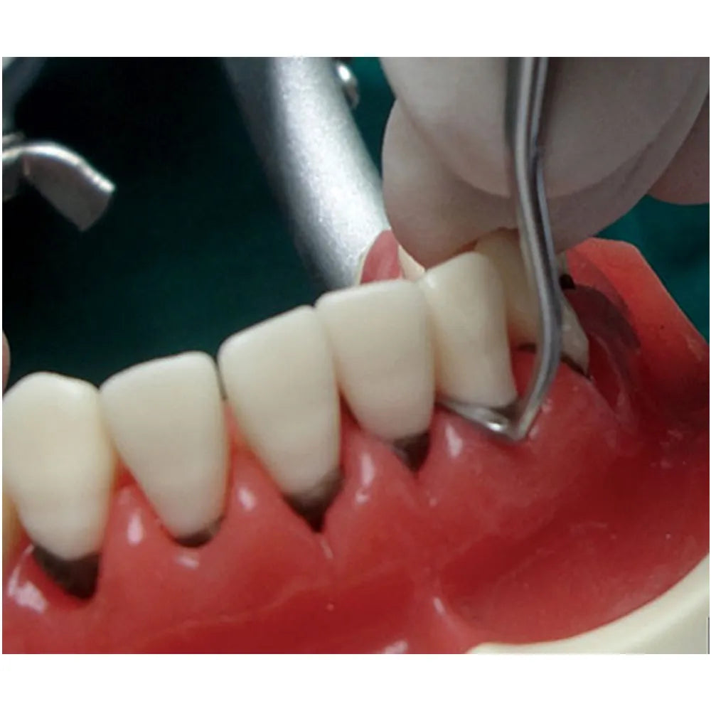 - For incising soft tissue, use the curved blade end of the instrument to make precise incisions in the periodontal tissues, carefully navigating the blade through the tissues.