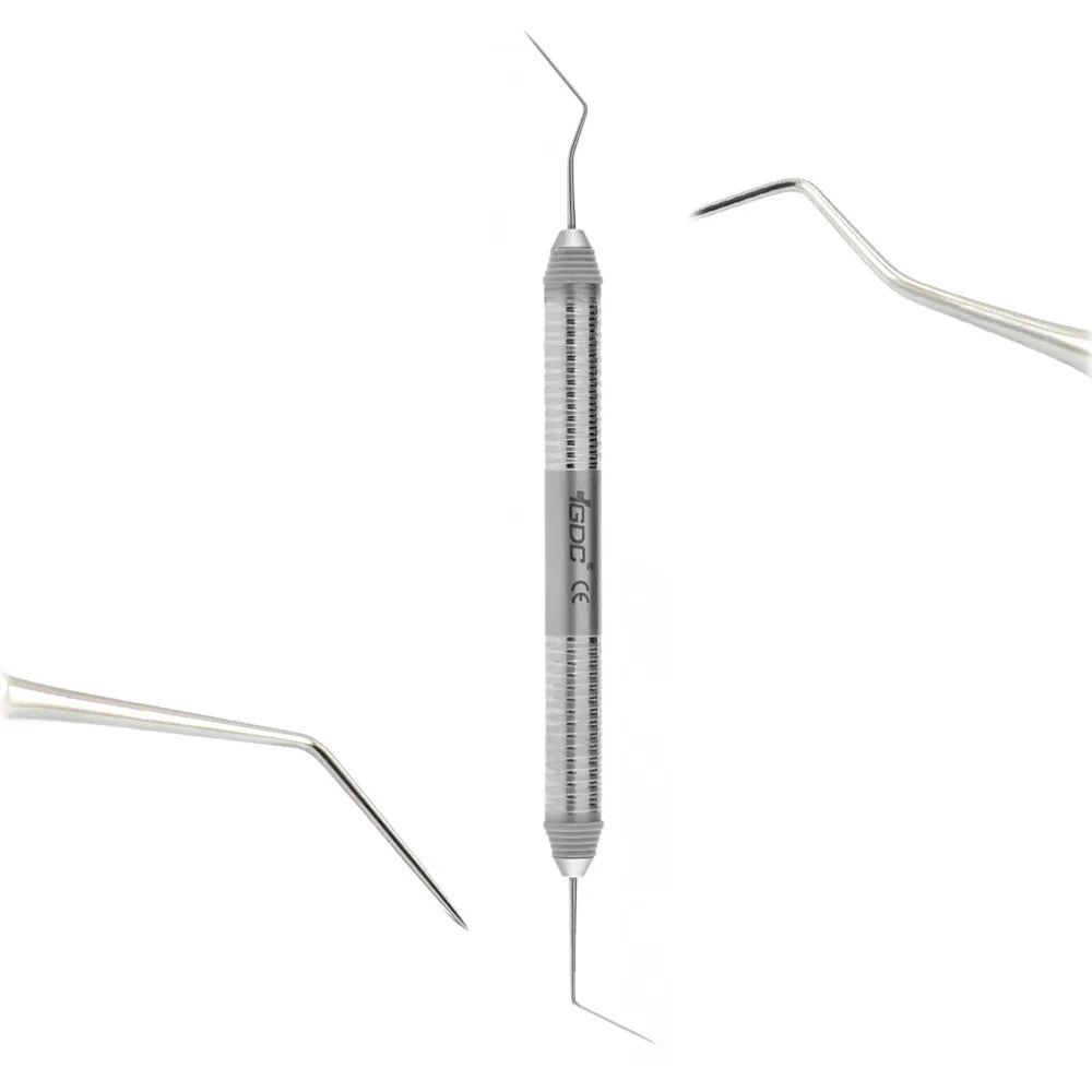 - Locating Canal Orifices: The GDC Endo Explorer DG 16-6 is used to locate the openings of root canal systems within the tooth. The thin, tapered explorer tip allows for precise probing and identification of canal orifices, aiding in proper access and treatment planning.