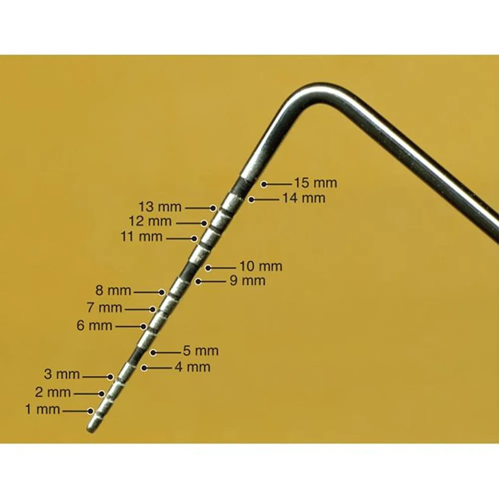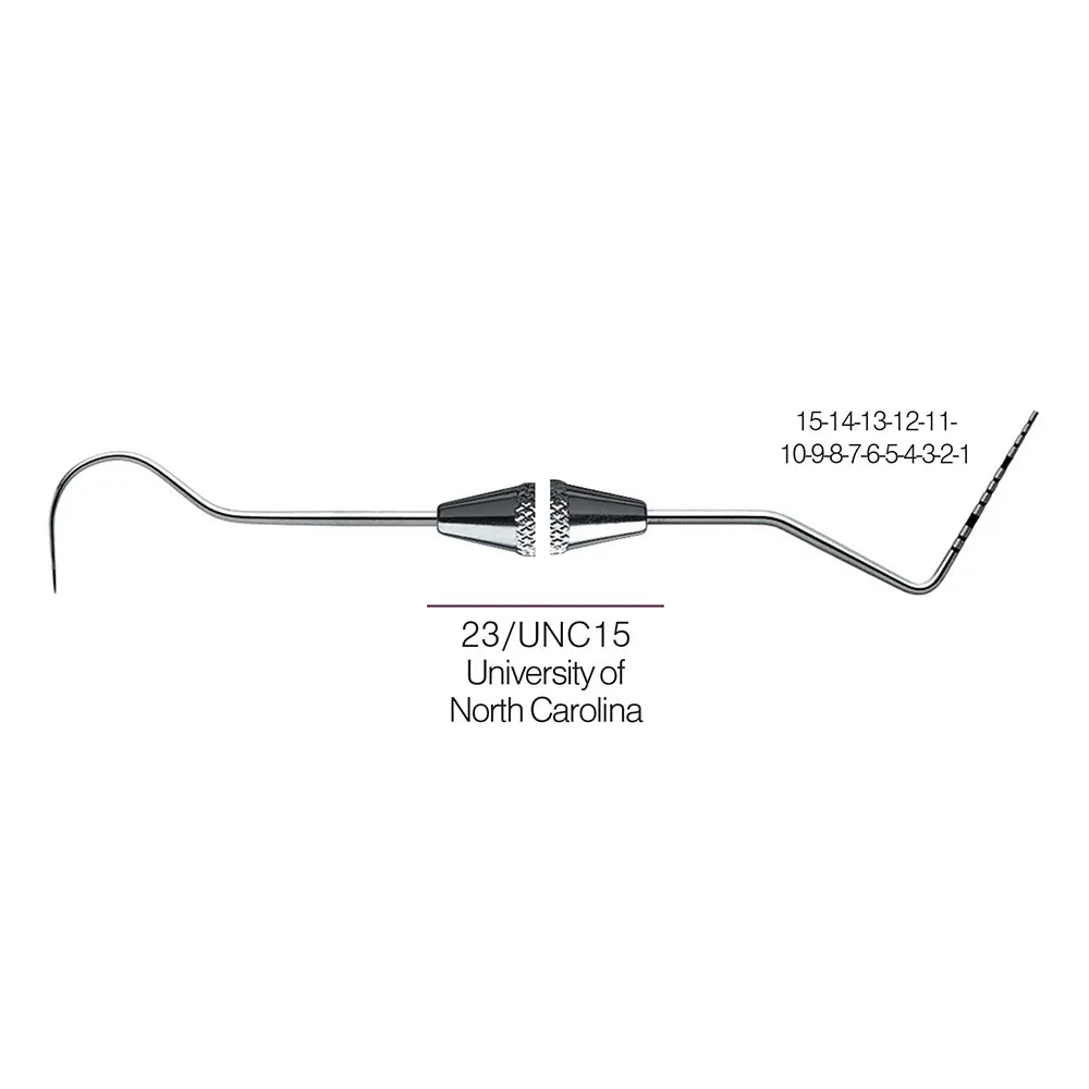 - UNC-15 Probe Tip: The UNC-15 probe tip is designed for periodontal probing and measuring pocket depths around the teeth, assisting in assessing gum health and periodontal conditions.