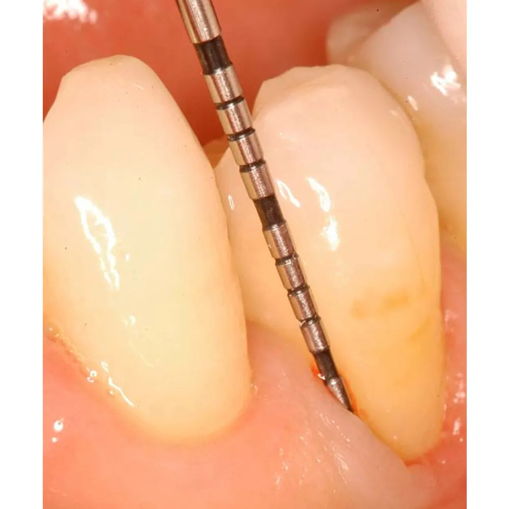 - UNC-15 Probe Tip: To measure pocket depths around the teeth, use the UNC-15 probe tip (marked with PCPUNC15) at one end of the instrument. Gently insert the probe into the gingival sulcus or periodontal pocket and move it along the tooth surface. Note and record the depth of the pockets.