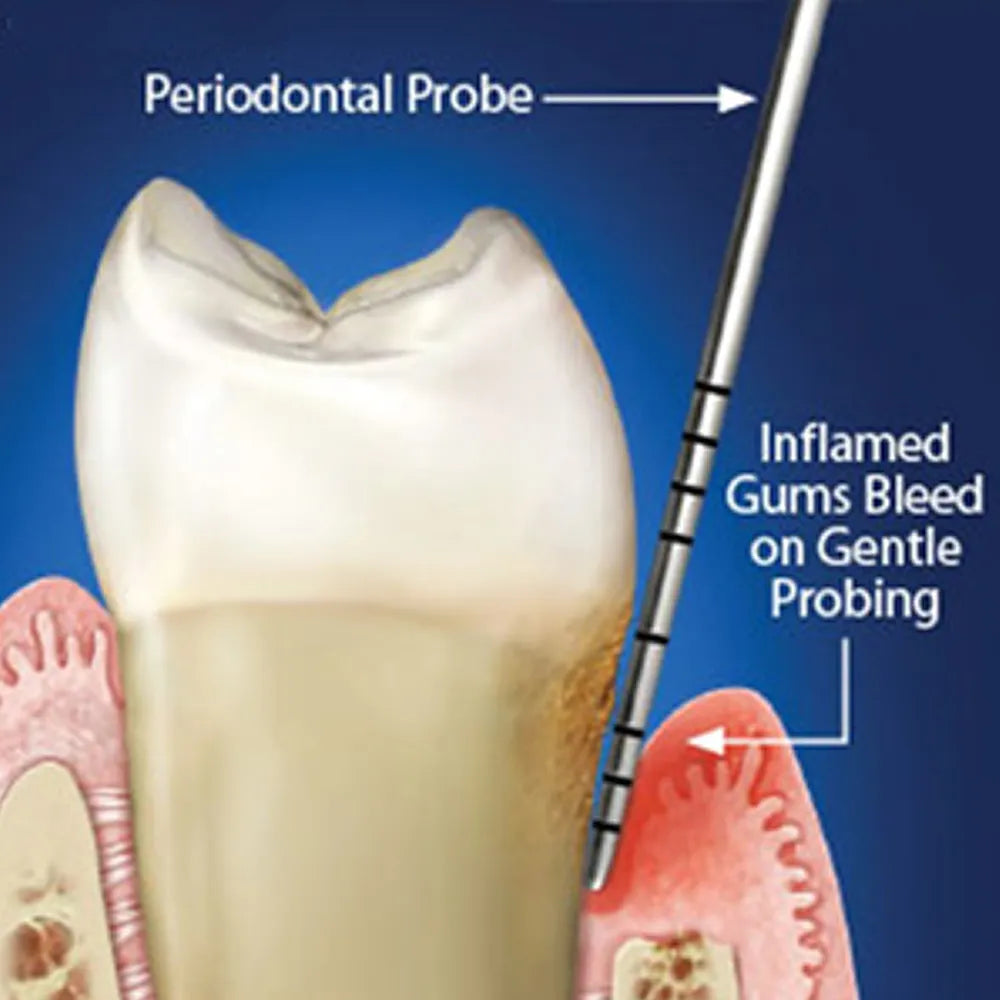 - Williams Periodontal Probe Function: a. Measurement of gum pocket depth: To assess periodontal health, insert the Williams probe gently into the space between the gum and the tooth (the periodontal pocket) at a 45-degree angle to the tooth surface. b. Read the measurements: The Williams probe is calibrated with millimeter markings. As you insert the probe, note the depth of the gum pocket in millimeters. This measurement indicates the health of the gum attachment to the tooth and helps identify signs of gum disease (periodontal disease).