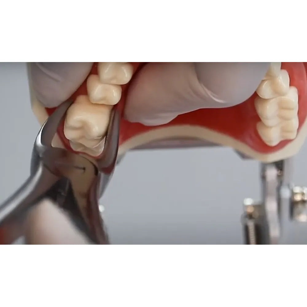 - Grasping the Tooth: With the extraction forceps in hand, carefully grasp the crown of the upper right molar firmly but gently. Ensure that the beak of the forceps snugly conforms to the contour of the tooth to facilitate a secure grip.