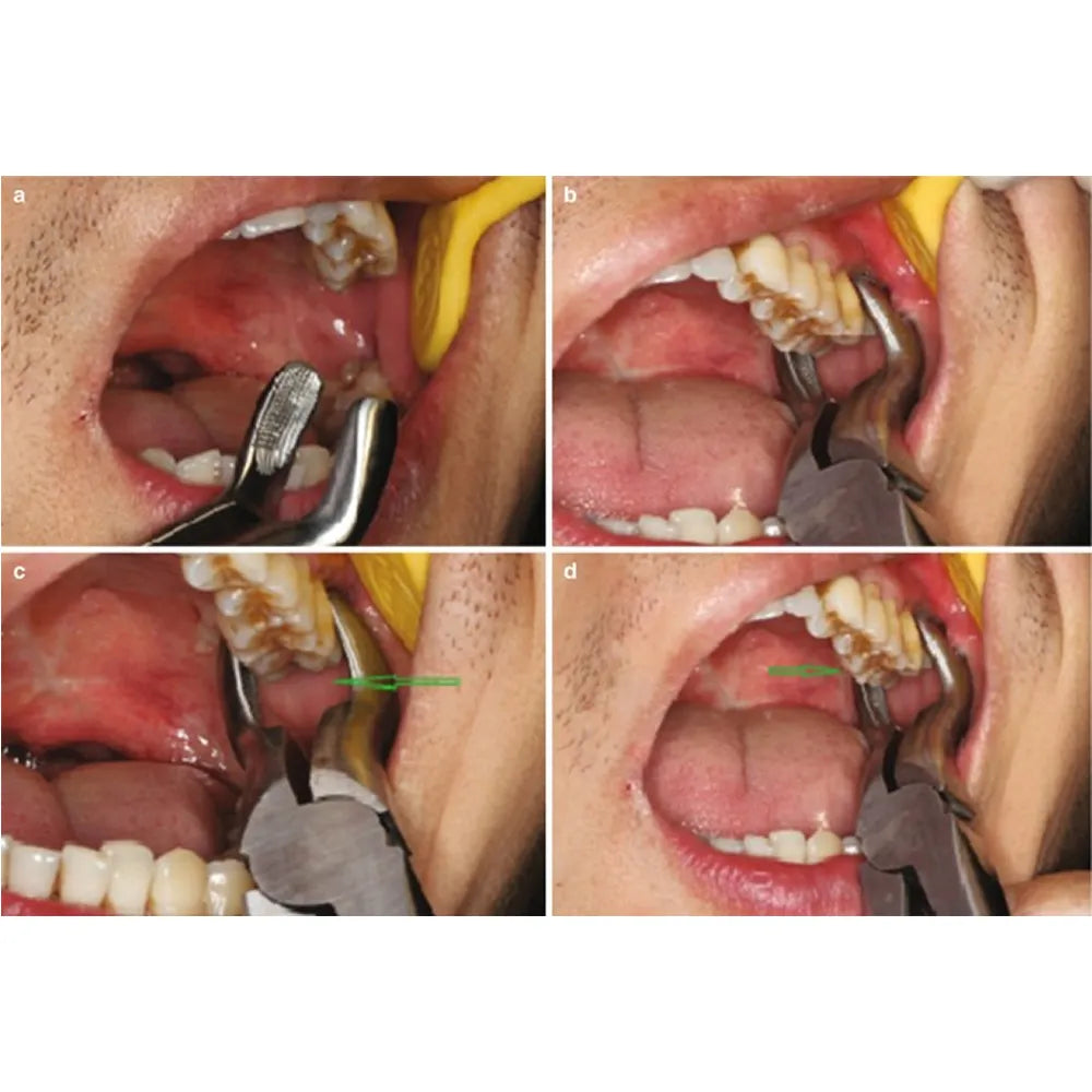 - Grasp the tooth: Hold the forceps in your dominant hand with a firm but comfortable grip. Position the beaks of the forceps around the crown of the upper third molar, ensuring a secure grip. Adjust the angle of the forceps as necessary to accommodate the tooth's position.