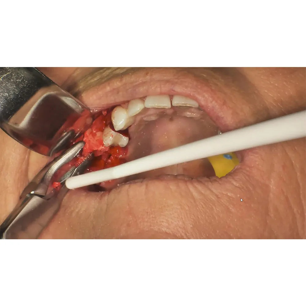 A bone rongeur is used after extraction and oral maxillofacial surgery to remove bony fragments or soft tissues. Rongeurs are surgical instruments used to trim, contour, and remove bone after teeth extractions. Rongeurs have a spring mechanism between the handles and a sharpened working end. A rongeur is a heavy-duty instrument with a sharp-edged scoop-shaped tip, used for gouging to the bone. It can be used to open a window in bone, in order to access underneath tissues.