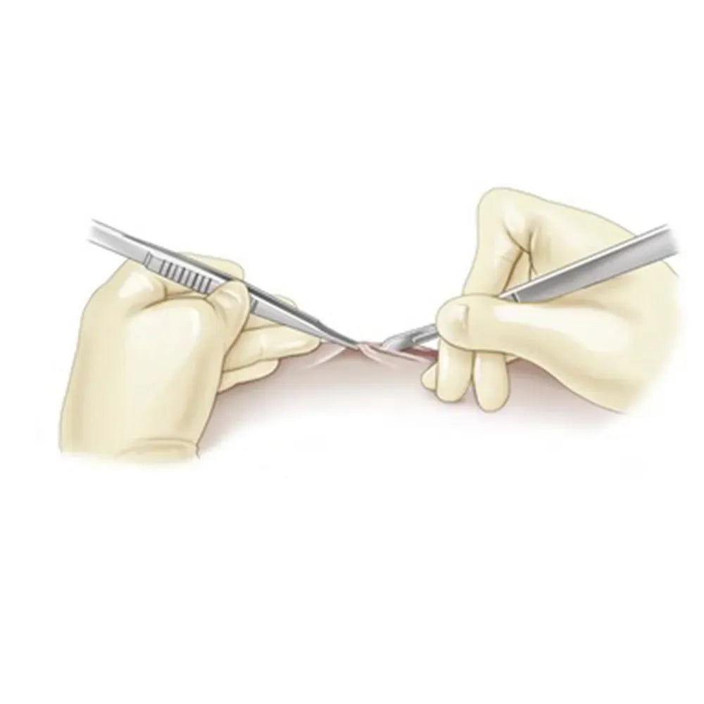 - Handling the Forceps: Hold the forceps with a pencil-like grip, ensuring you have control and precision over the curved tips.