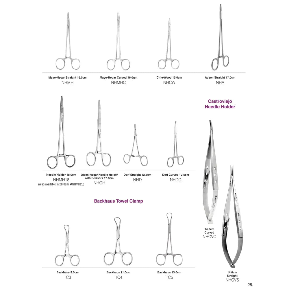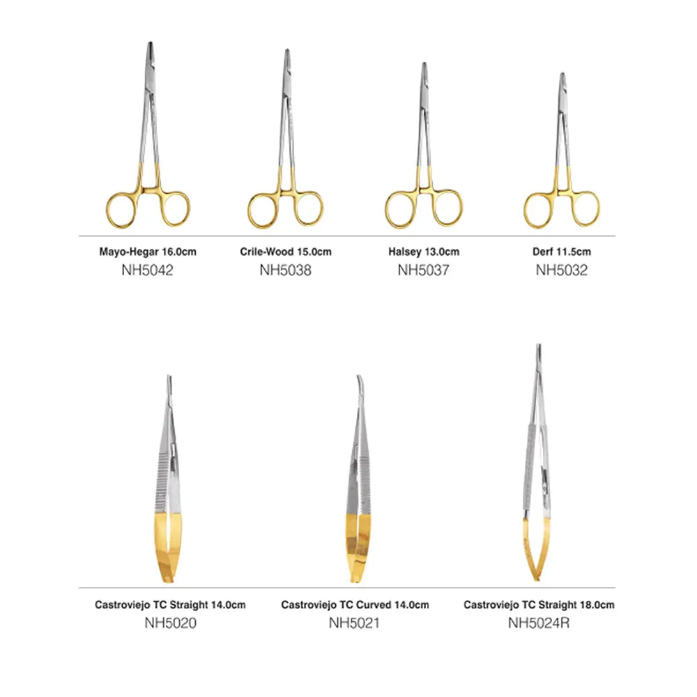 Needle holders are specialized hemostat tools used to hold the needles during surgical operations used to grasp and guide the needle when suturing. The internal surface of the needle holder is grooved and cross-hatched, permitting a firm and stable grasp of the needles needle holder can release the needle with simple pressure. Needle holders are used for suturing wounds.