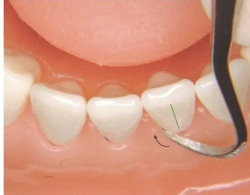 - Make short, controlled pulling or pushing motions along the tooth surface, removing plaque and calculus.