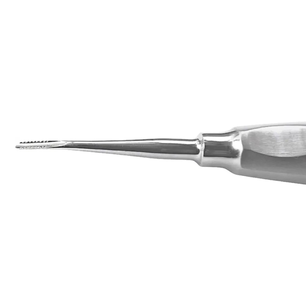 - The design and dimensions of the elevator aim to provide practitioners with optimal leverage, aiding in the smooth and controlled elevation of tooth roots.