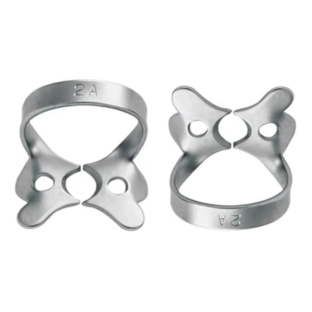 The GDC Rubber Dam Clamp Adult 2a (Rdc2a) is a vital tool used in dentistry to secure a rubber dam around the cervical area of exposed teeth. Crafted from durable spring metal, it boasts bevelled jaws that securely grip the tooth, along with a bow connecting the jaws for stability. With its flat and large jaws specifically designed for lower premolars, this clamp ensures precise placement and retention during procedures. Suitable for use on teeth numbered 20, 21, 28, and 29, it offers versatility to accommodate various dental situations. This clamp comes in a range of shapes, sizes, and designs, catering to the diverse needs of dental practitioners. Whether for restorative or endodontic procedures, the GDC Rubber Dam Clamp Adult 2a provides reliable performance and optimal patient comfort.