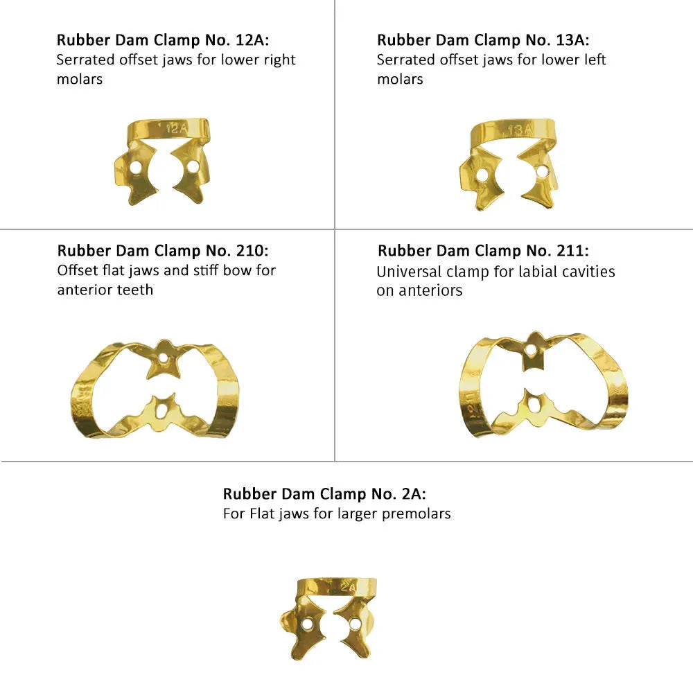 - Comprehensive Set: Includes a range of gold-plated clamps providing versatile options for different tooth morphologies.