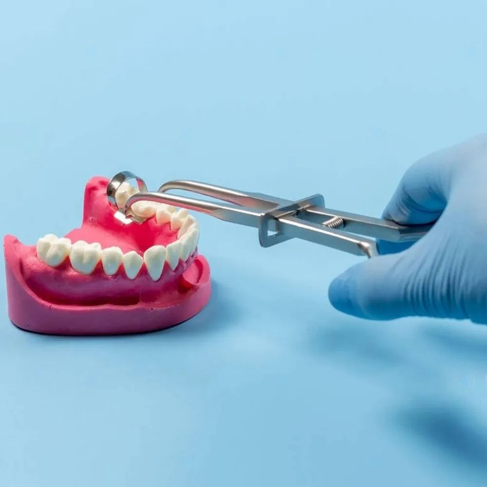 - Removal of Rubber Dam Clamp: Open the forcep handles to release the grip on the rubber dam clamp and carefully remove the clamp from the tooth.