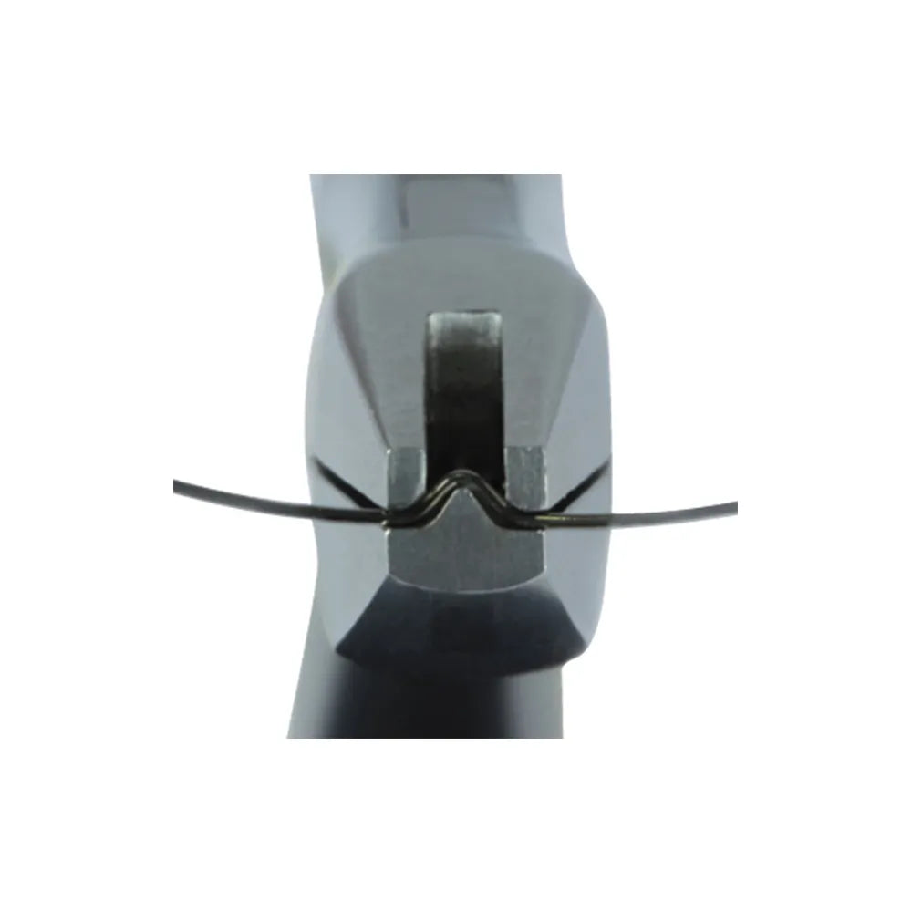 Places V Bend in archwire, are ideal for putting a precise v bend or v notch on archwires. This prevents sliding and can prevent wires from disengaging from the buccal tube and is also useful in shortening wires.Most V bend stop pliers work on round, square, and rectangular nickel titanium wires.