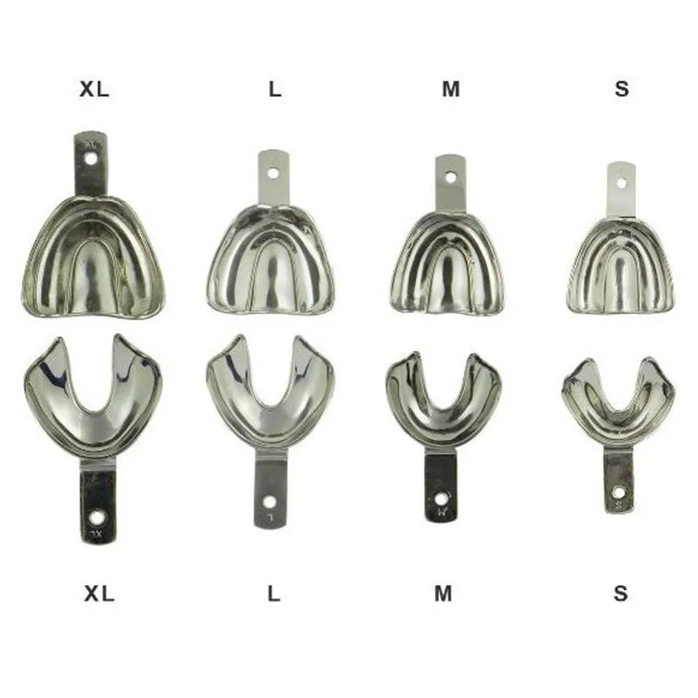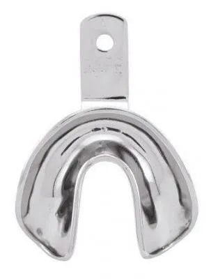 Dental Impression tray Edentulous Non-Perforated is used to take a negative imprint of hard (teeth) and soft tissues in the mouth from which a positive reproduction (cast or model) can be formed. Impression material is of liquid or semi-solid nature when first mixed and placed in the mouth. It then sets to become an elastic solid (usually takes a few minutes depending upon the material), leaving an imprint of a person's dentition and surrounding structures of the oral cavity.