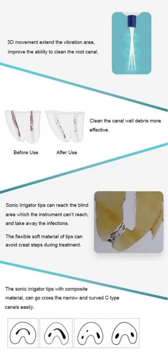 Superendo Sonic Irrigator Tips are used with Supernendo Sonic Endo Irrigator, Dentsply Endoactivator and API Sonic Endoactivator.
