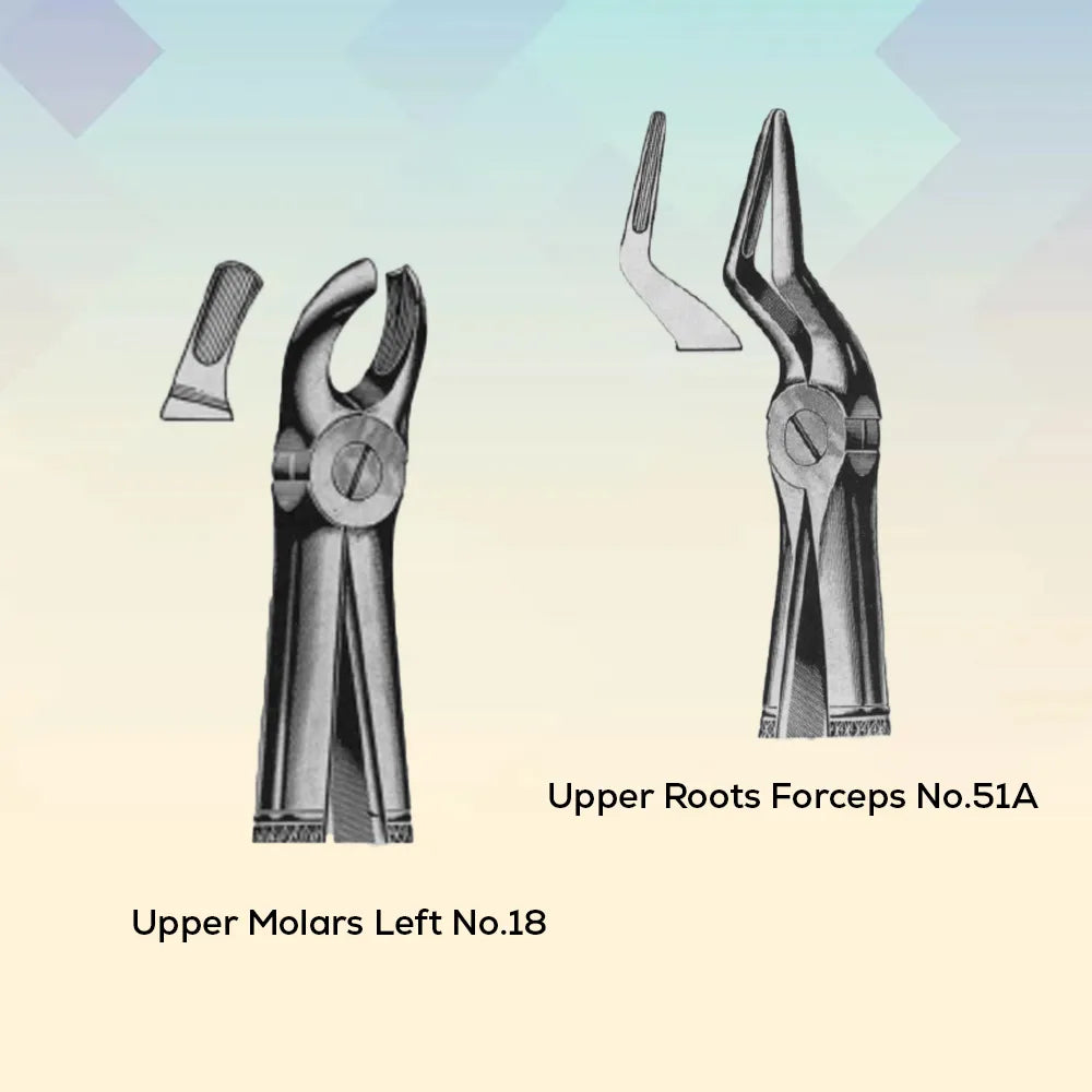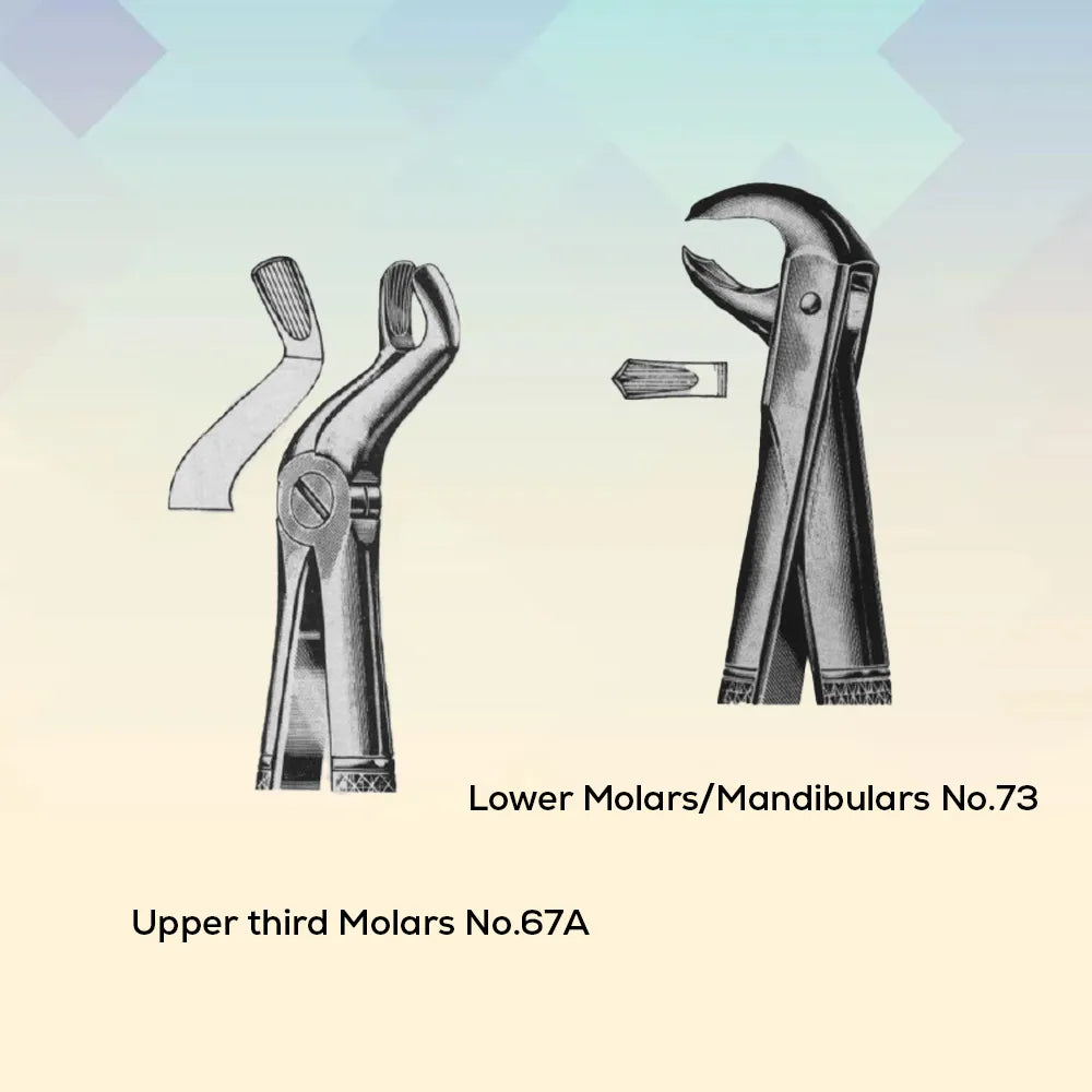 Tooth Extracting forceps are used to extract teeth. They are designed for use in specific areas of the mouth. The beak is shaped to confirm snugly to the contour of the tooth.This makes it easier to reach different teeth effectively.Dental forceps handles are shaped so that a maximum amount of force can be applied to the beaks, while the handles are still in a comfortable position for the oral surgeon.