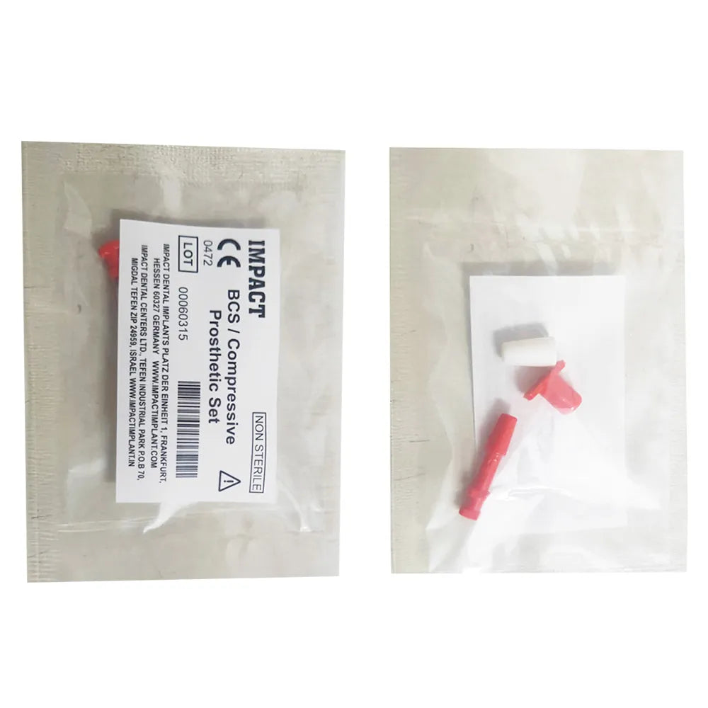 The Impact BCS/Compressive Prosthetic Set comprises essential components such as transfers, lab analogs, and burnout caps. These integral elements facilitate the transfer of information from the patient's implant site to the dental laboratory, allowing for the precise fabrication of prosthetic restorations. The transfer aids in capturing the implant's position, while the lab analog serves as a replica of the implant for laboratory work. The burnout cap is used in the casting process to create a mold for the final prosthetic restoration. Together, these components contribute to the efficient and accurate creation of customized prosthetics in dental implant procedures.