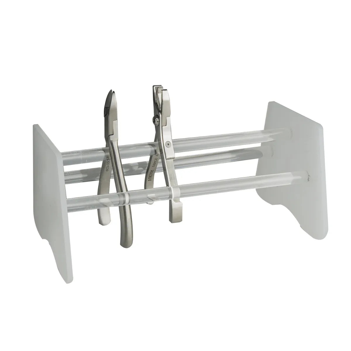 Crafted from high-quality materials, this rack combines the sleek aesthetic appeal of acrylic plates with the durability and sophistication of stainless steel rods. The transparent acrylic plates not only imbue a sense of pristine cleanliness but also allow for easy visibility of the stored tools, enhancing accessibility during procedures. Meanwhile, the sturdy stainless steel rods ensure secure placement of orthodontic pliers, scissors, and various other small instruments, providing a reliable storage solution that exudes professionalism.
