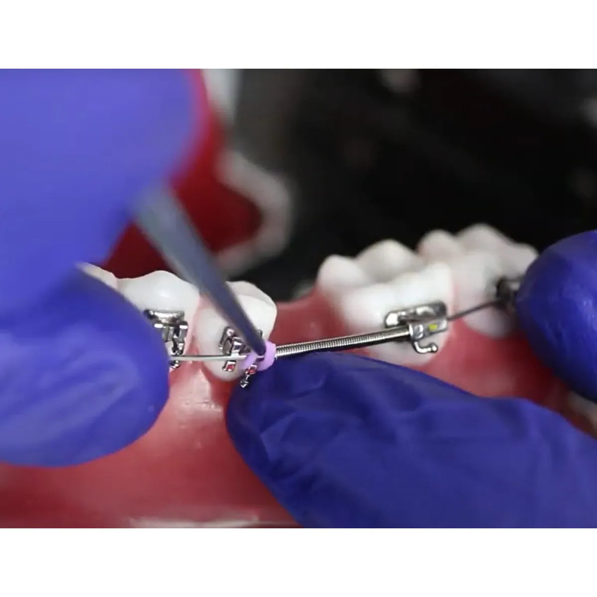 Ortho Stainless Steel NiCr Closed Coil Spring based on treatment objectives. Adjust the length of the spring if necessary using orthodontic wire cutters. - Attachment: Thread the closed coil spring onto the